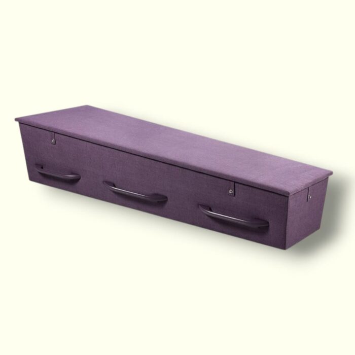 Deze paars gestoffeerde uitvaartkist van gelaagd populierenhout is bekleed met zacht 100% katoen in linnenstructuur. Verkrijgbaar in vier ingetogen kleuren, geschikt voor crematie en begrafenis. Discrete en spoedlevering mogelijk.